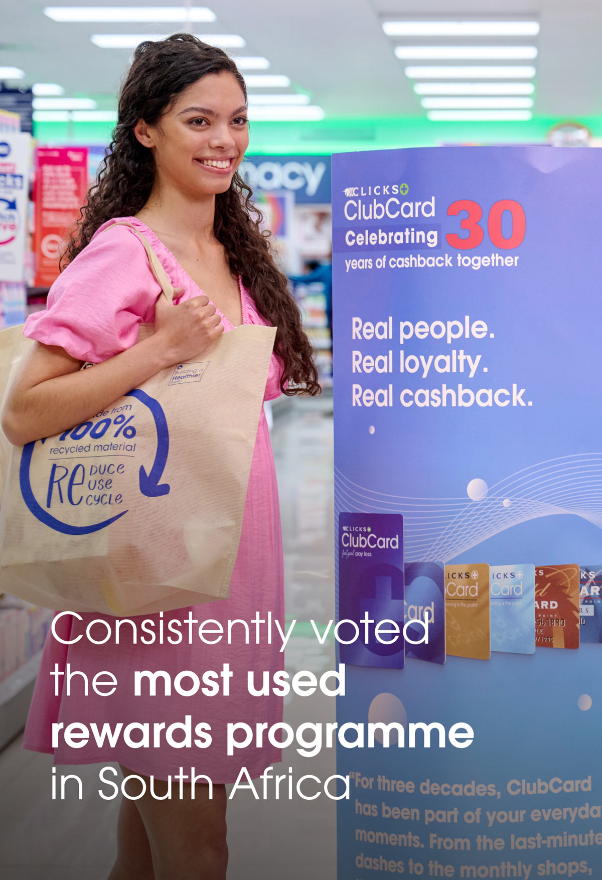 As South Africa’s first and most used retail loyalty programme, Clicks ClubCard has been providing benefits and discounts to customers since 1995. Now, three decades after its launch, 12.6 million active ClubCard members enjoy rewards offering day-to-day value.