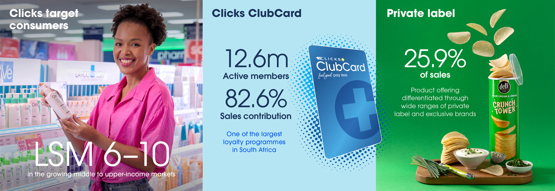 In 2023 Clicks acquired the Sorbet beauty salon franchise chain, operating under the Sorbet (all-round beauty therapy), Sorbet Man (male grooming) and Candi & Co (ethnic haircare) brands.