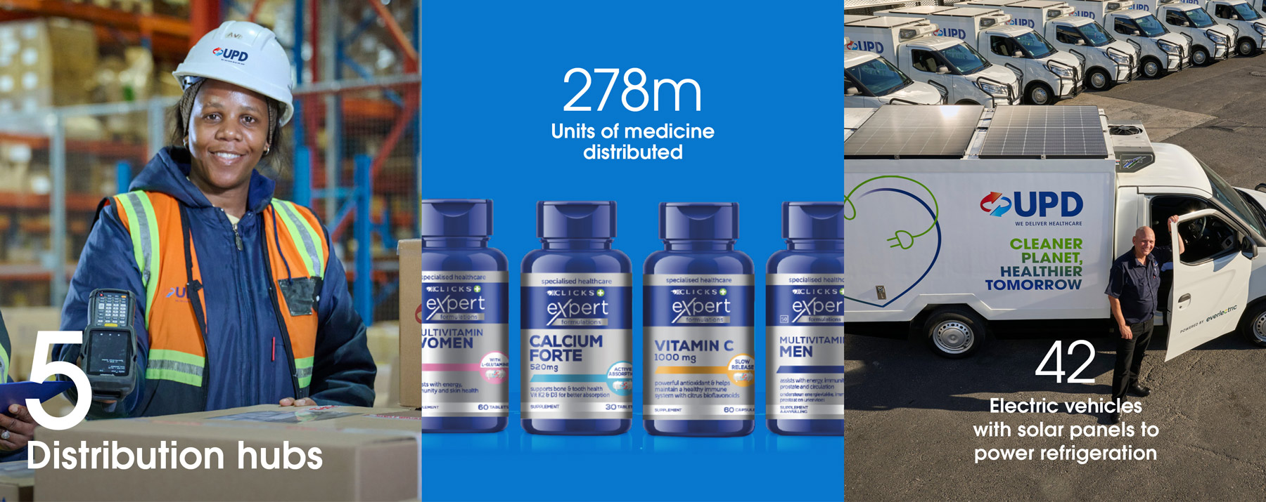 UPD fulfils the pharmaceutical supply needs of Clicks, major private hospital groups and 1 020 independent pharmacies.