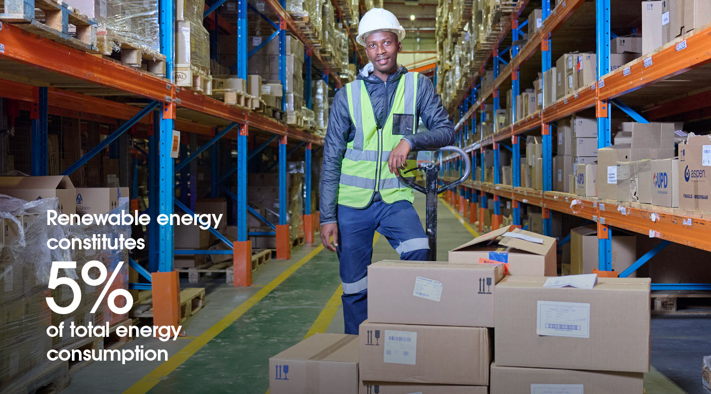 In the 2025 financial year the group advanced its environmental stewardship agenda with significant expansion of renewable energy and low-carbon initiatives. Solar power generation capacity at distribution centres (DCs) and head office facilities was increased, exceeding the annual production target of 4 500 MWh. The expansion of battery storage at the head office, Lea Glen and Montague Gardens DCs enhanced energy resilience and renewable utilisation. Supported by reduced load shedding, these developments materially improved renewable energy generation to 5 563 MWh, representing an 8% increase from the prior year (2024: 5 135 MWh).